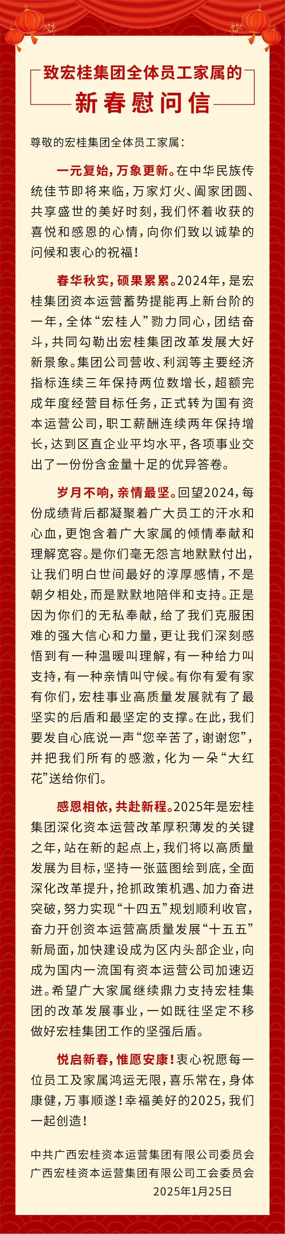 感恩相依 共赴新程!致广西宏桂集团全体员工家属的新春慰问信